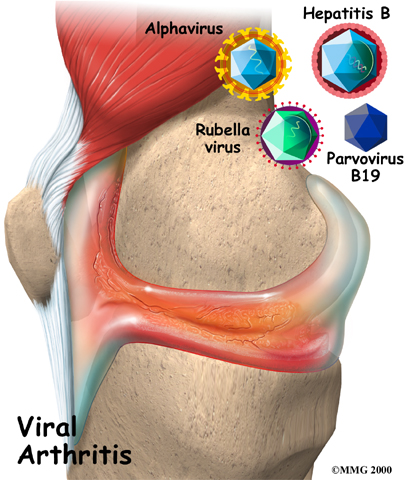 In viral arthritis, the immune system’s response to the virus causes inflammation in the joints. Even after the virus is eliminated from the body, the changes in the joint can continue to cause pain and swelling. The joint may even become permanently damaged.